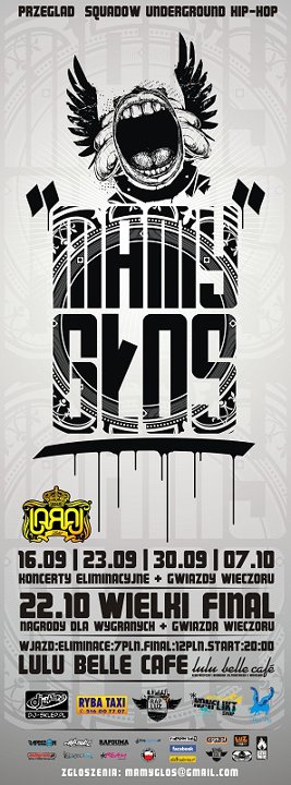 "Mamy Głos". Jest to event organizowany przez młodych zdolnych twórców Hip-Hop z Wrocławia, mający na celu odnalezienie / odkrycie młodych zdolnych, którym nie zawsze jest po drodze do zrobienia kariery.