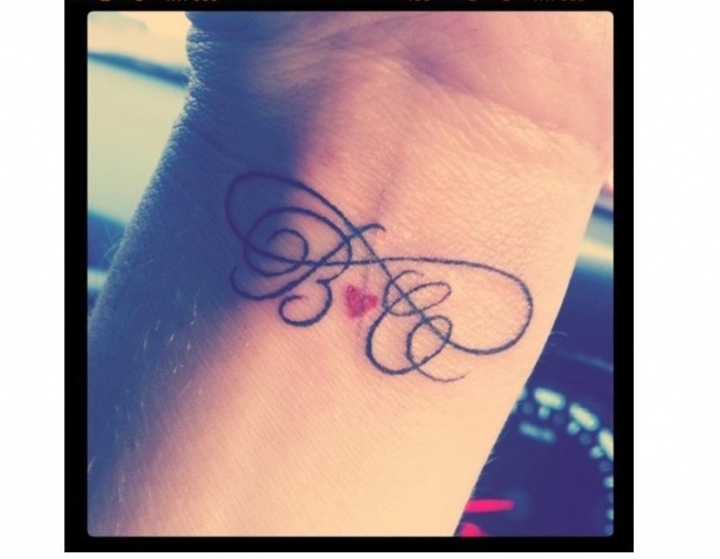 Jeszcze ciekawsze wzory ma tatuaż znak nieskończoności z inicjałami. Najczęściej jest to wyrafinowana plątanina linii i połączeń dwóch liter, którą ozdabia się dodatkowo wybranym elementem, na przykład sercem.